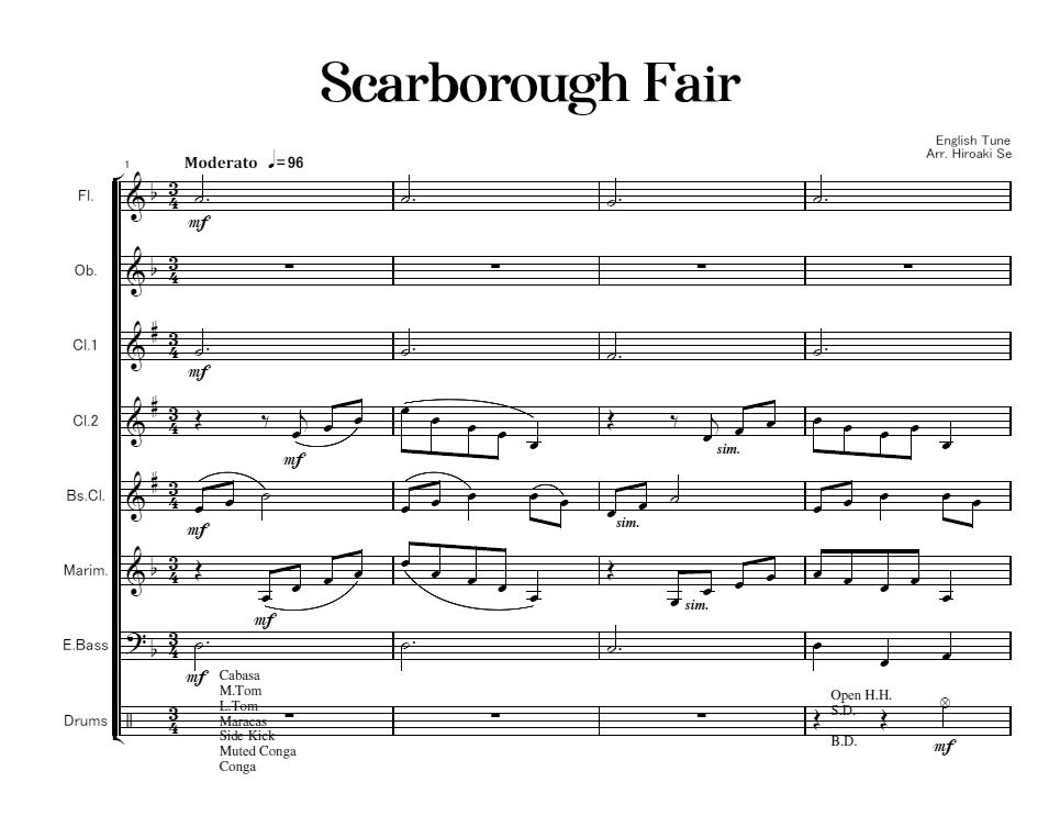 木管五重奏とベース打楽器のための「スカボローフェア」