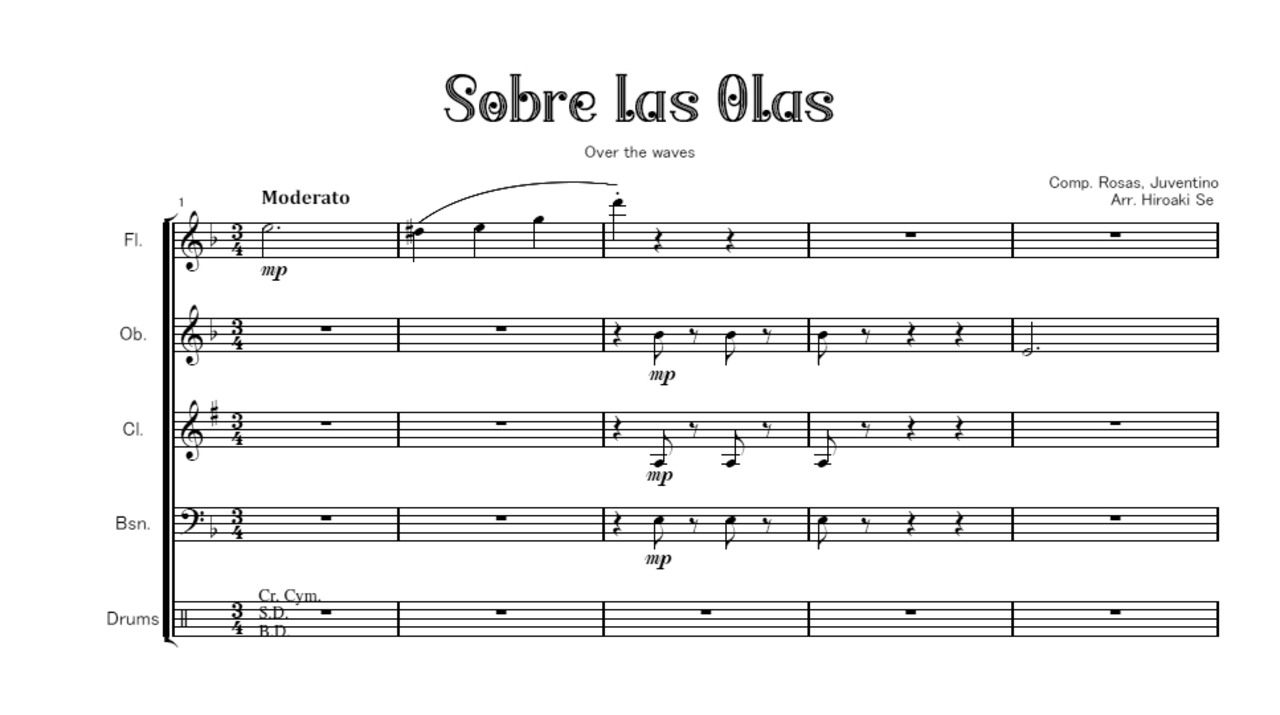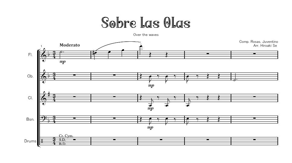 編成はFl.、Ob.、Cl.、Bsn.、Drumsです。