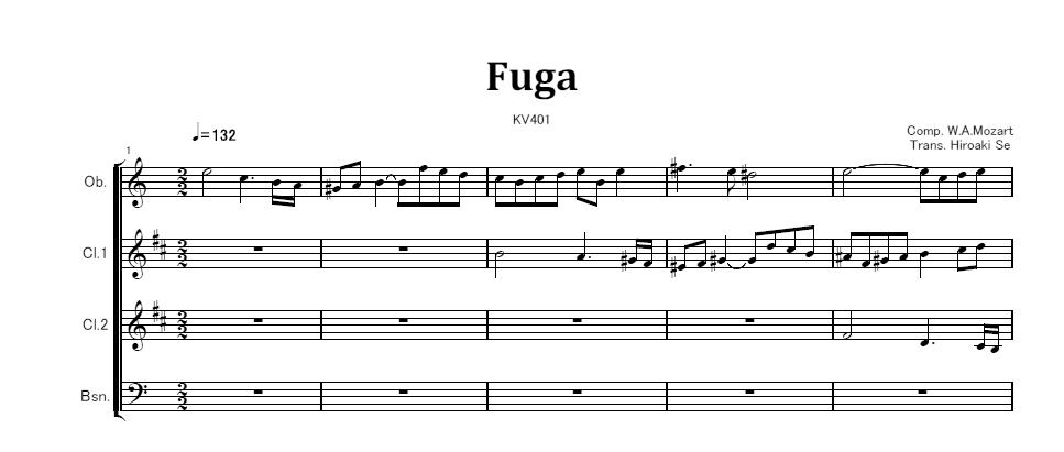木管四重奏(オーボエ・クラ・ファゴット)フーガト短調(KV401)
