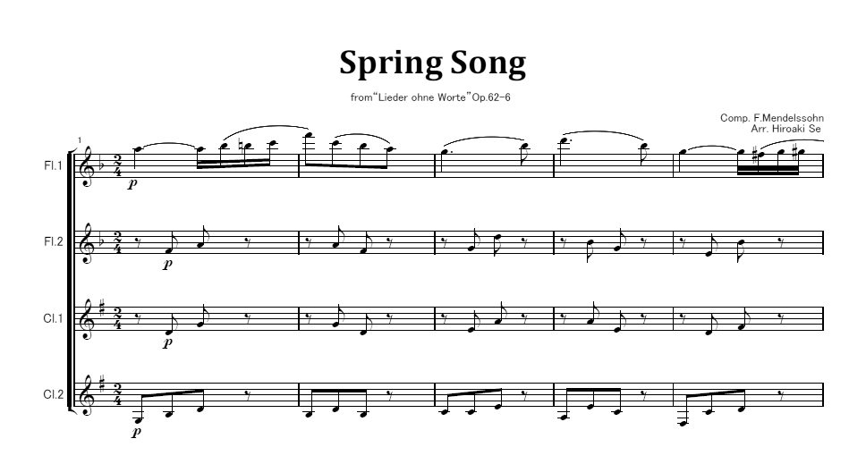木管四重奏「春の歌」メンデルスゾーン :無言歌集 第5巻 Op.62-6 U 161 イ長調