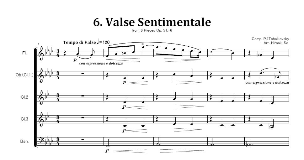 木管五重奏 6つの小品 感傷的なワルツ Op.51-6 ヘ短調