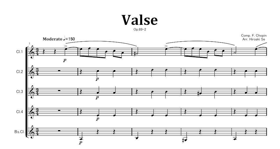 クラリネット五重奏ショパン ワルツ(19曲) 第10番 Op.69-2