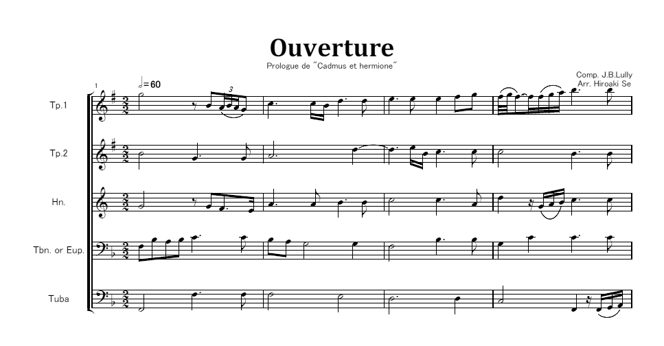サックス五重奏 叙情悲劇『カドミュスとエルミオーネ』序曲