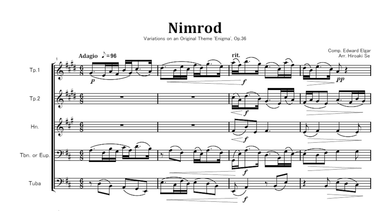 金管五重奏 ニムロッド(「エニグマ変奏曲」より第9変奏)B dur