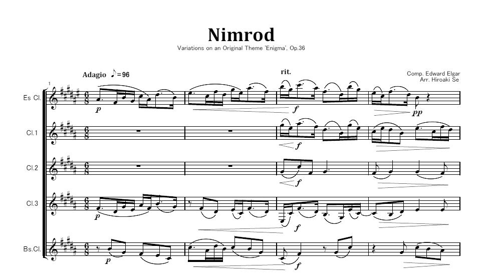クラリネット五重奏 ニムロッド(「エニグマ変奏曲」より第9変奏)F dur