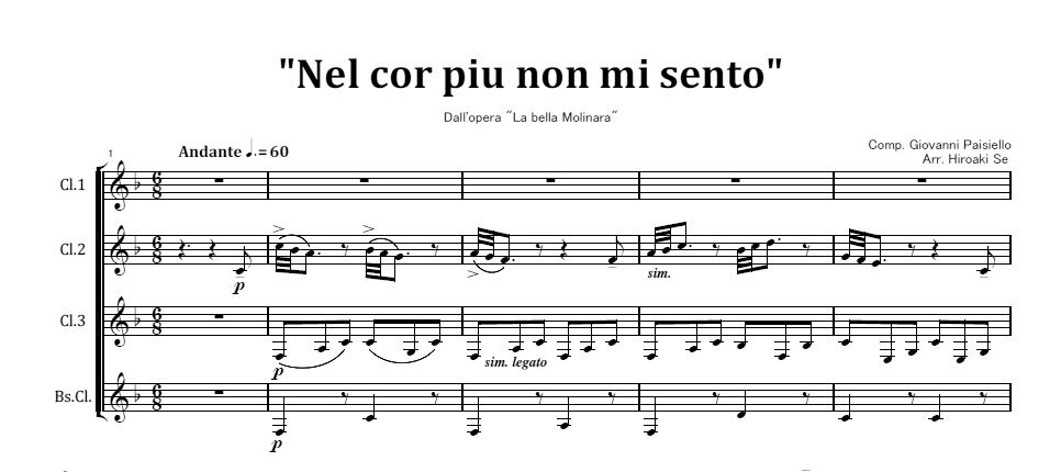クラリネット四重奏 もはや私の心には感じない(うつろの心):パイジエッロ