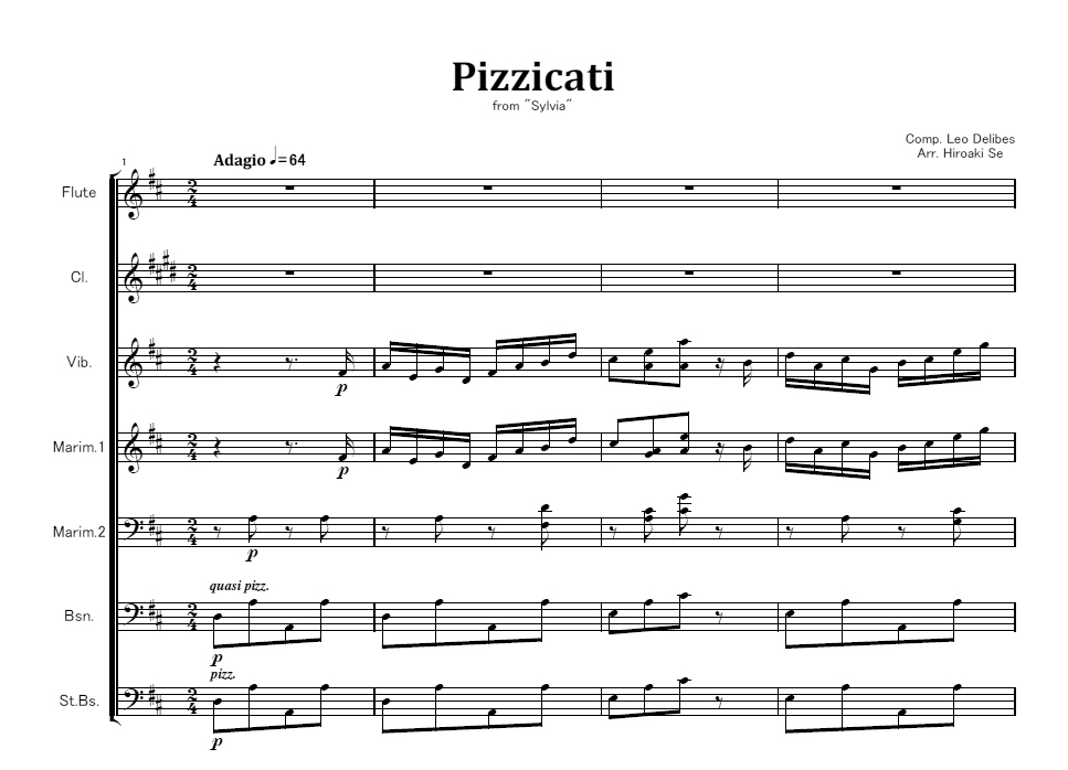 鍵盤打楽器+七重奏 ドリーブ:バレエ組曲「シルヴィア」から 第3曲「ピチカート」