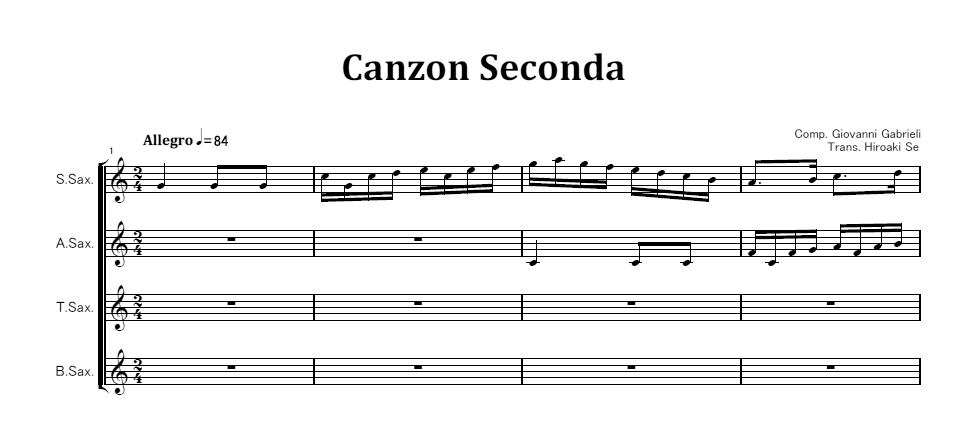クラリネット四重奏 ガブリエリ :4声のカンツォーナ・ペル・ソナール第2番