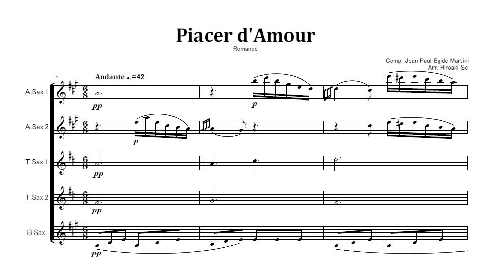 サックス五重奏 ピアチェル ダモール『愛の喜びは』