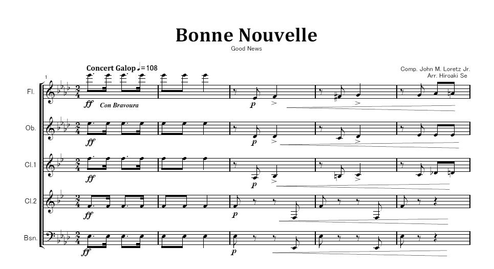 編成はFl.、Ob.、Cl.2本、Bsn.です。