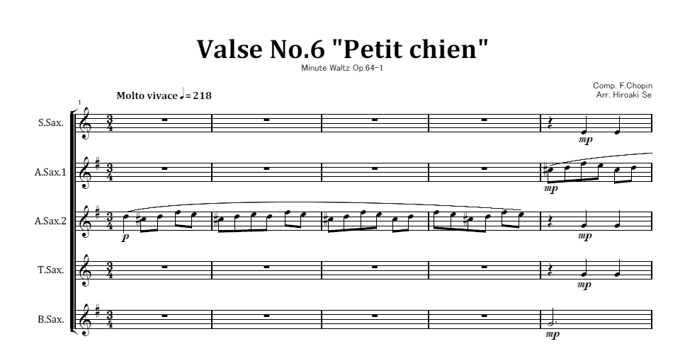 サックス五重奏 ショパン :ワルツ(19曲) 第6番 「小犬のワルツ」 Op.64-1 変ニ長調