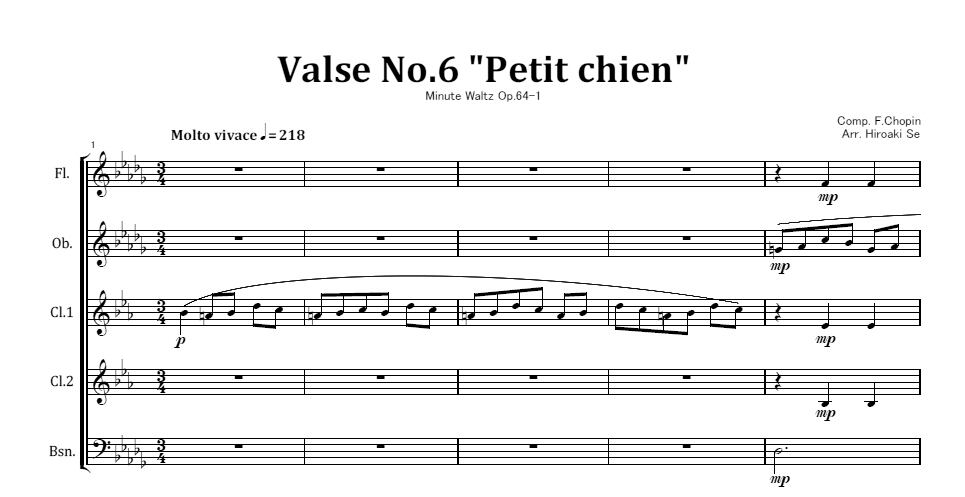 木管五重奏 ショパン :ワルツ(19曲) 第6番 「小犬のワルツ」 Op.64-1 CT212 変ニ長調