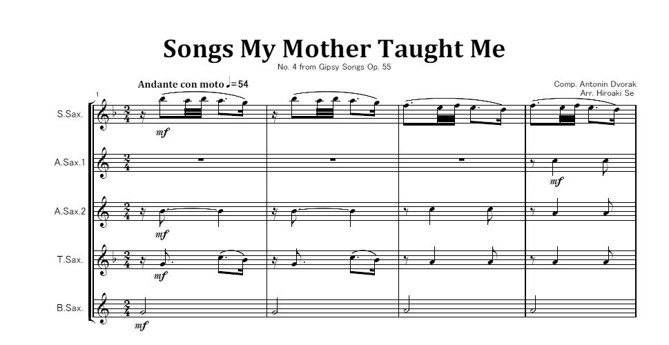 サックス五重奏“我が母の教え給いし歌”ドヴォルザーク:歌曲集 「ジプシーの歌」作品55より