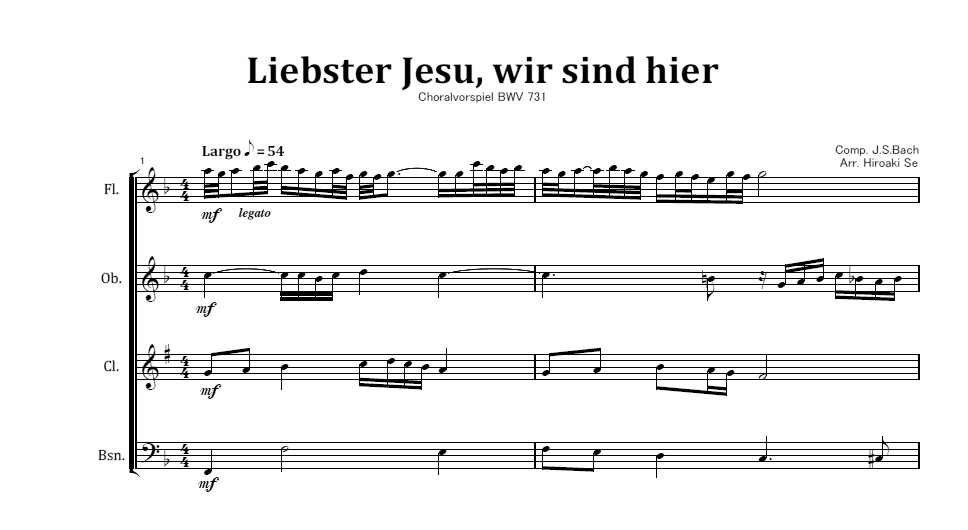 木管四重奏 バッハ 最愛のイエスよ 我らここに集いて