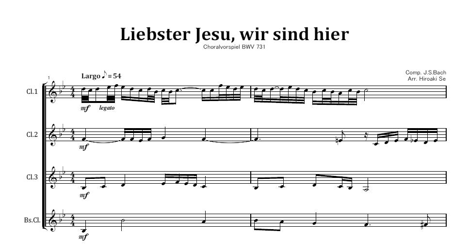 クラリネット四重奏 バッハ 最愛のイエスよ 我らここに集いて