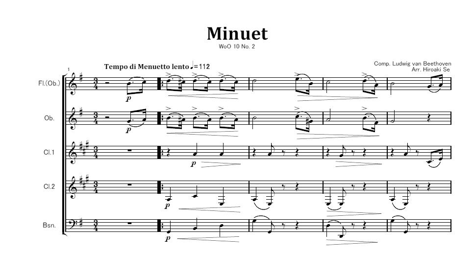 木管五重奏「6つのメヌエット」から第2曲 WoO 10-2:ベートーヴェン