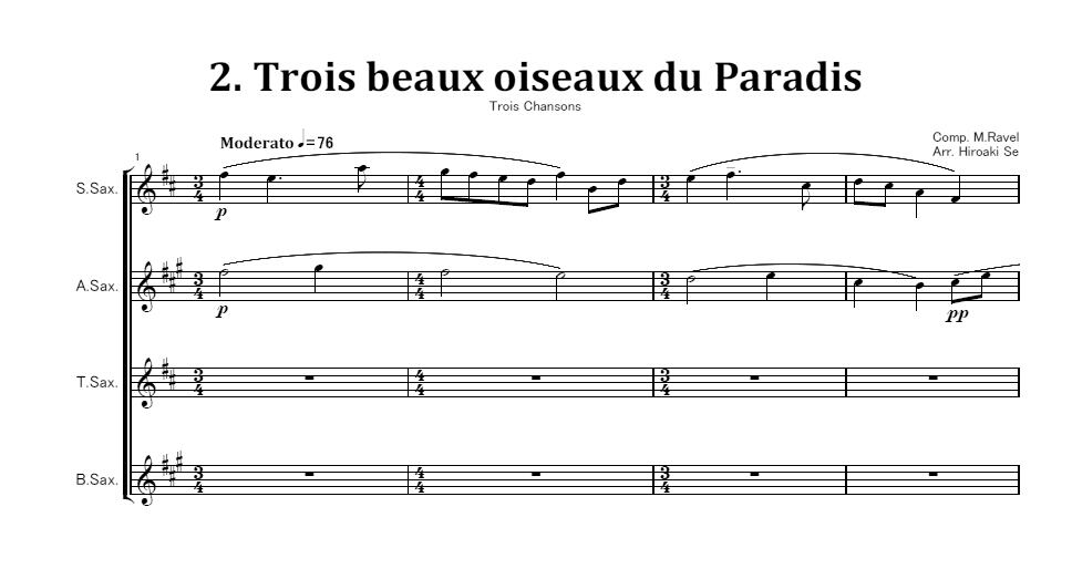 サックス四重奏 3つの歌:モーリス・ラヴェル 2. 3羽の美しい極楽鳥