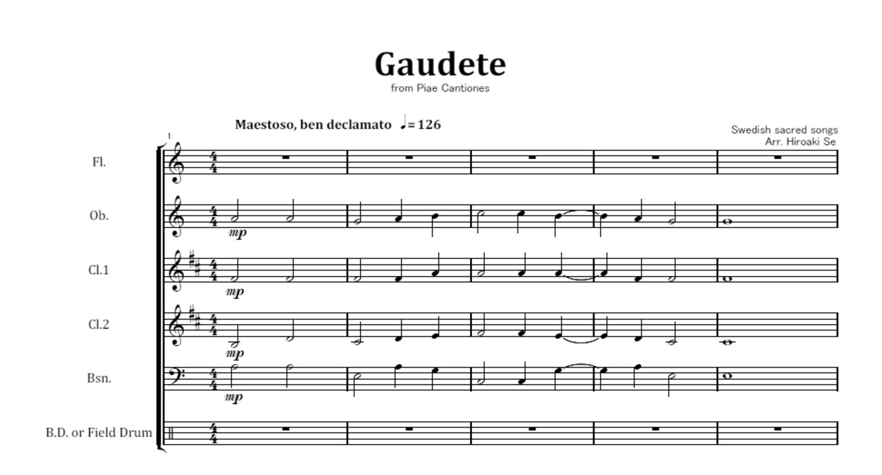 編成はFl.、Ob.、Cl.2本、Bsn.および打楽器1名です。