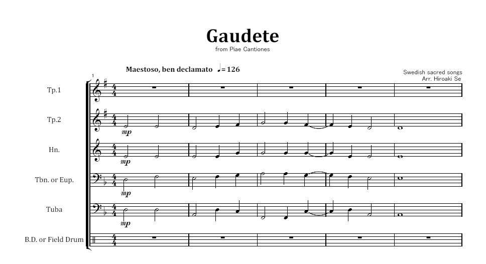 編成はTp.2本、Hn.、Tbn.またはEup.、Tubaおよび打楽器1名です。
