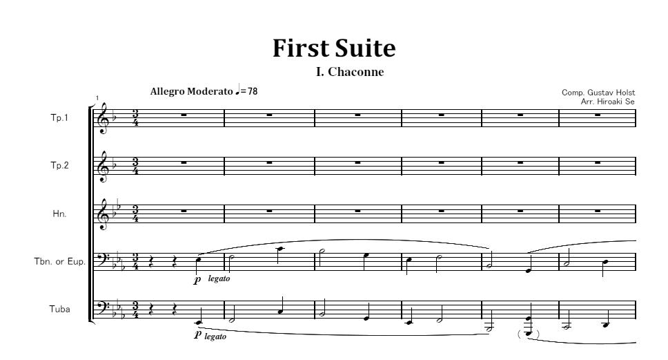 編成はTp.2本、Hn.、Tbn.またはEup.、Tubaです。