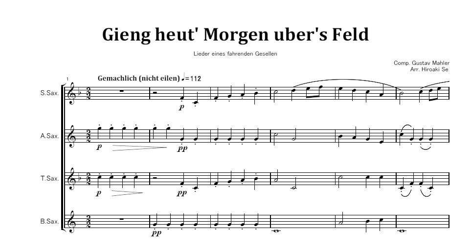 サックス四重奏 マーラー:さすらう若人の歌 から