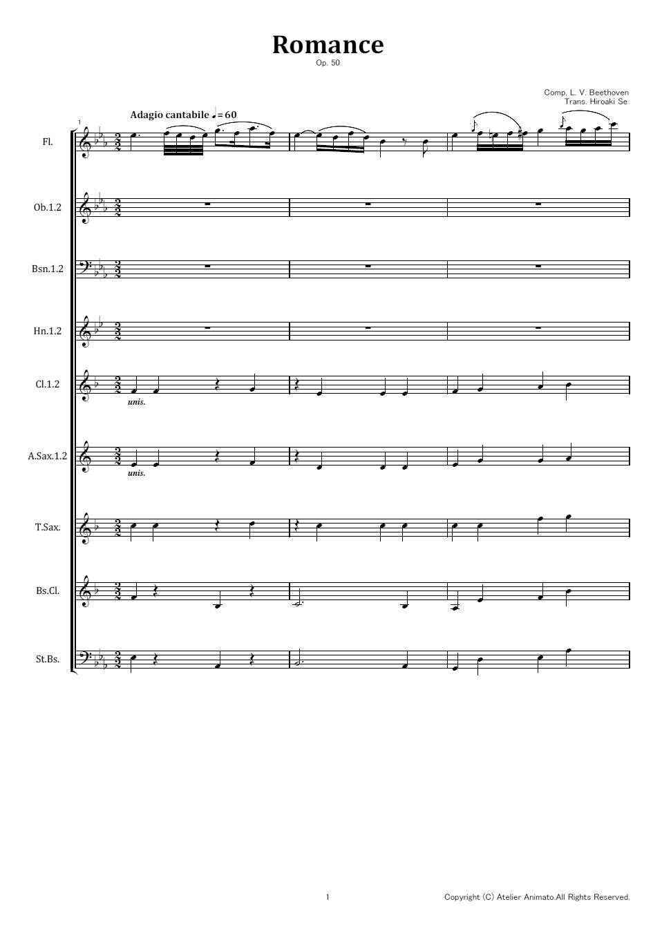 編成はSolo Fl.、Ob.2本、Bsn.2本、Hn.2本、Cl.2本、A.Sax.2本、T.Sax.、Bs.Cl.、St.Bs.です。