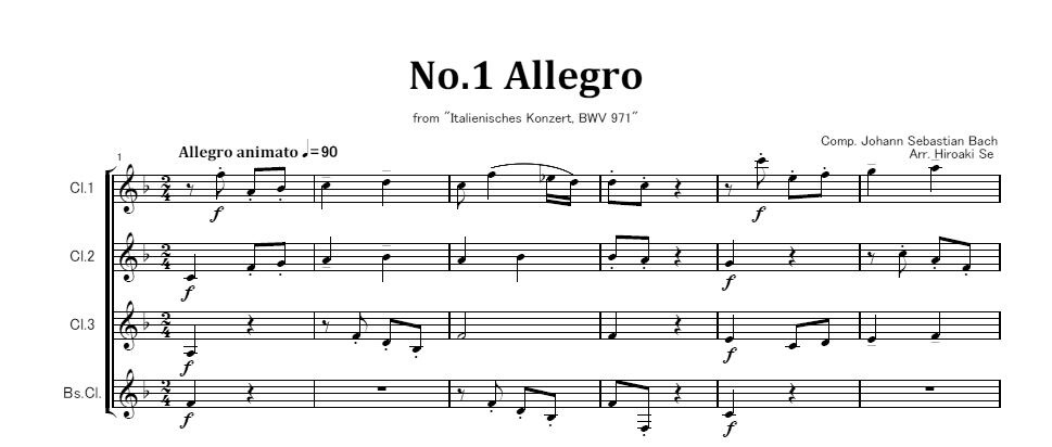 クラリネット四重奏 イタリア協奏曲 BWV 971 第1楽章