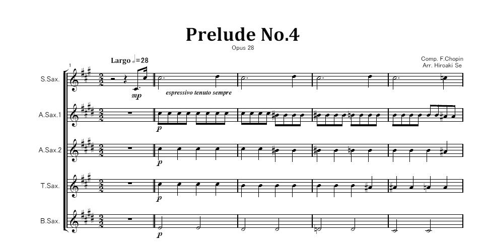 サックス五重奏 ショパン前奏曲 第4番 Op.28-4