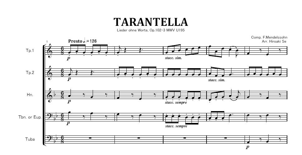 金管五重奏「無言歌集」第8巻 Op.102より第3番「タランテラ」ハ長調