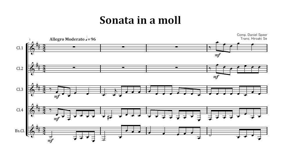 クラリネット五重奏 シュペールのソナタ・イ短調(オリジナル)