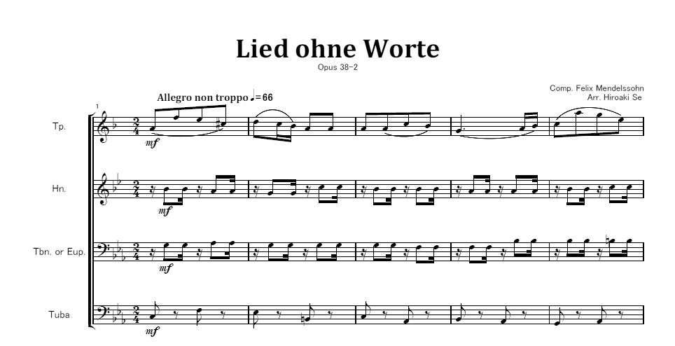 編成はTp.、Hn.、Tbn.またはEup.、Tubaです。
