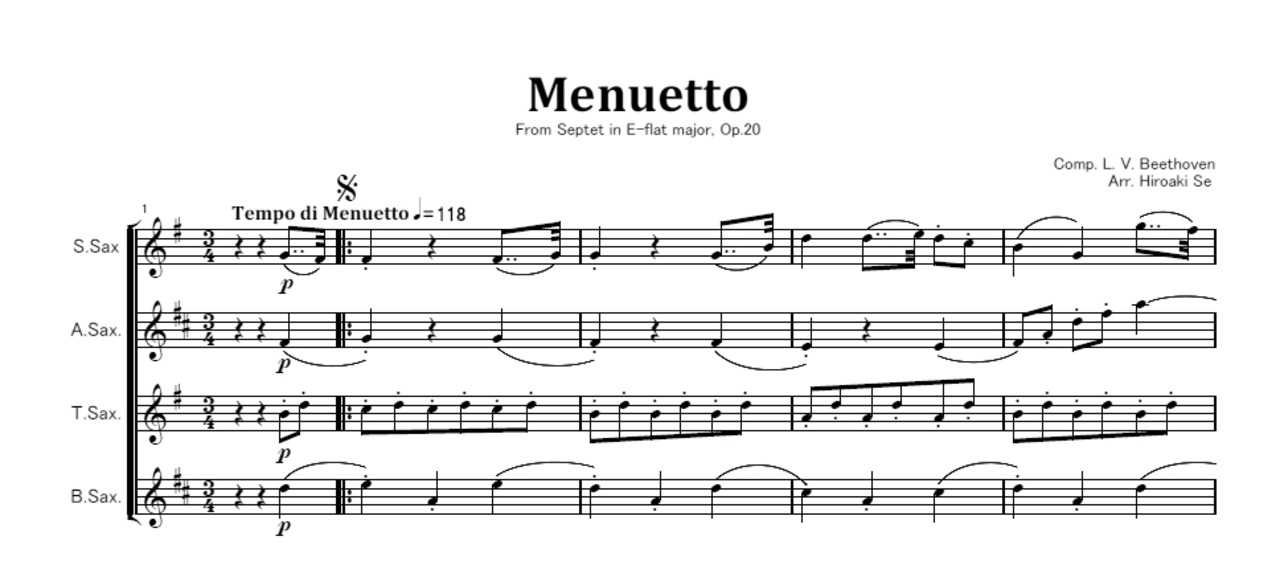 サックス四重奏 ベートーヴェン メヌエット Op.20から第3楽章