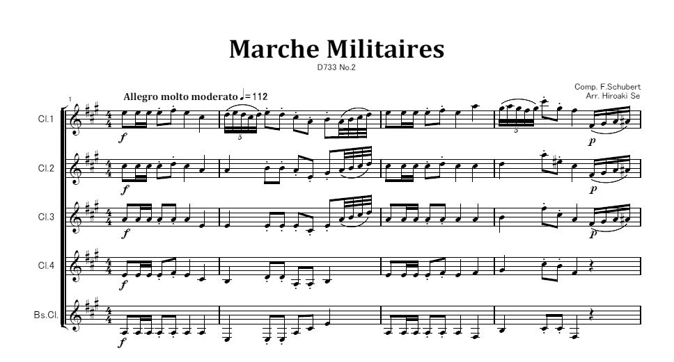 クラリネット五重奏 シューベルト:軍隊行進曲 第2番