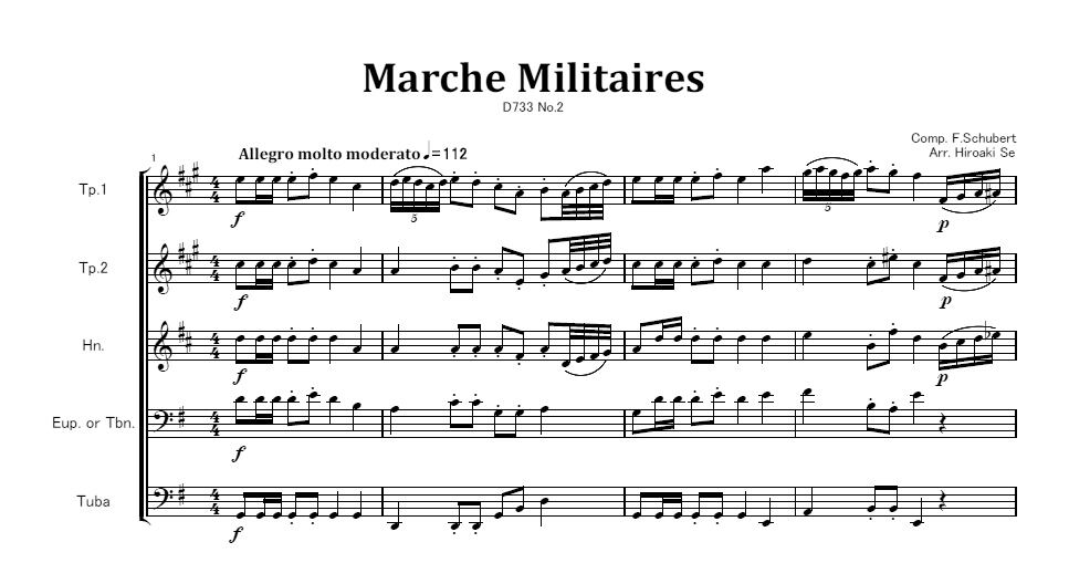 編成はTp.2本、Hn.、Tbn.またはEup.、Tubaです。