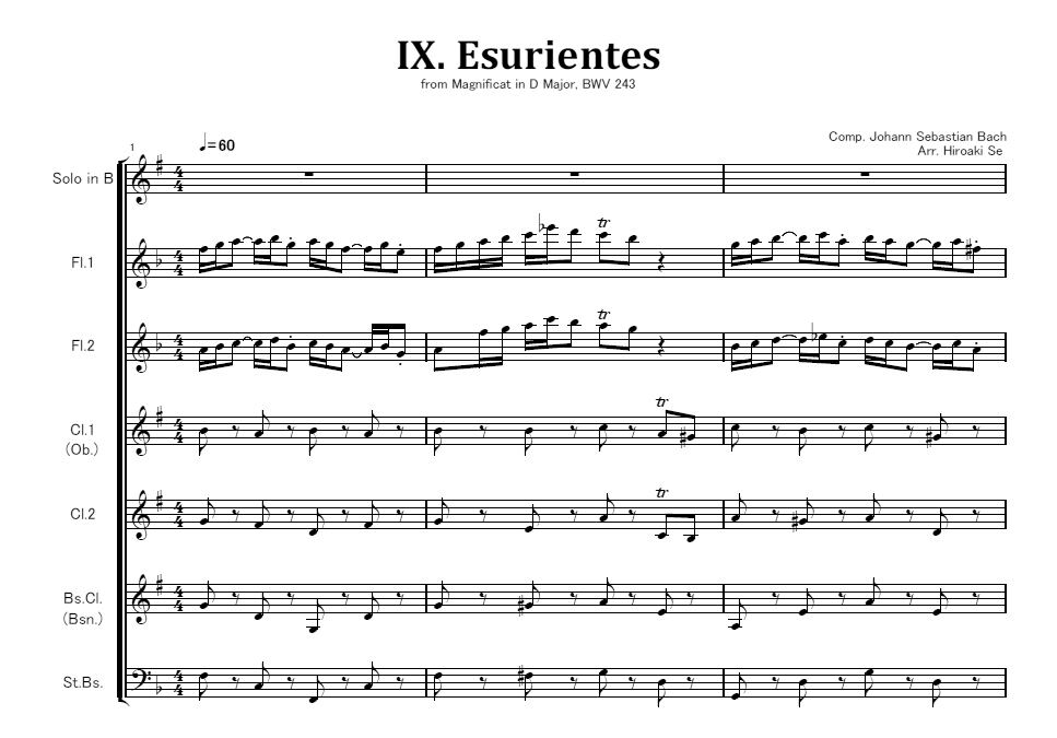 編成は編成はFl.2本、Cl.2本、Bs.Cl.、St.Bs.およびSoloパートです。