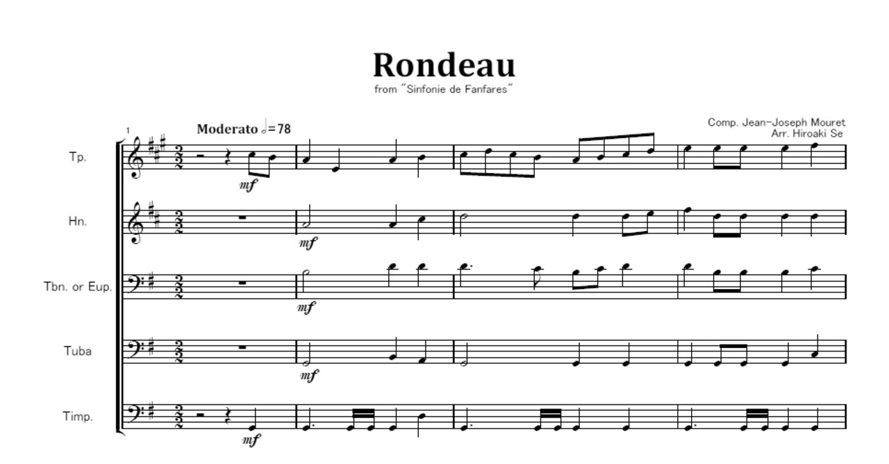 編成はトランペット、ホルン、トロンボーンまたはユーフォニアム、チューバ、ティンパニです。