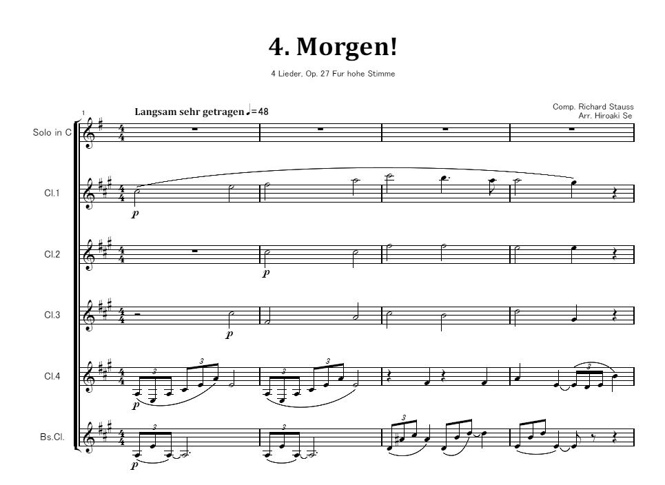 編成はCl.4本、Bs.Cl.、およびSoloパートです。