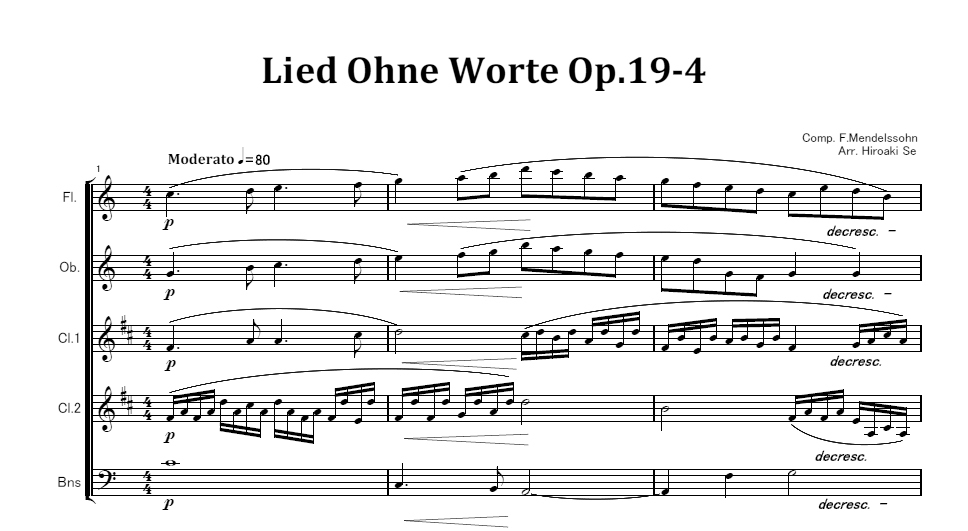 編成はFl.、Ob.、Cl.2本、Bsn.です。