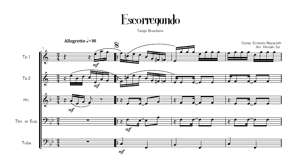 編成はTp.2本、Hn.、Tbn.またはEup.、Tubaです。