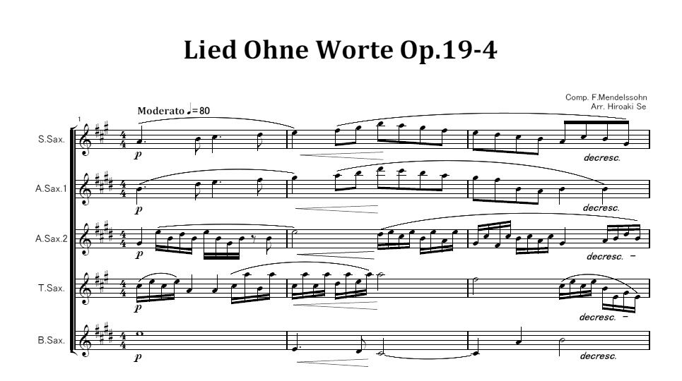 サックス五重奏 メンデルスゾーン 無言歌集 第1巻 「信頼」 Op.19-4 U 73