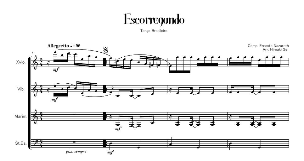 編成はXylo.、Vib.、Marim.、St.Bs.です。