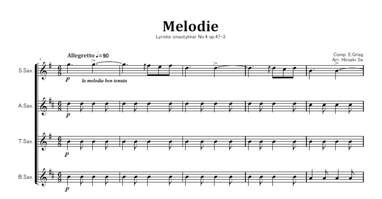 サックス四重奏 グリーグ :抒情小品集 第4集 Op.47-3