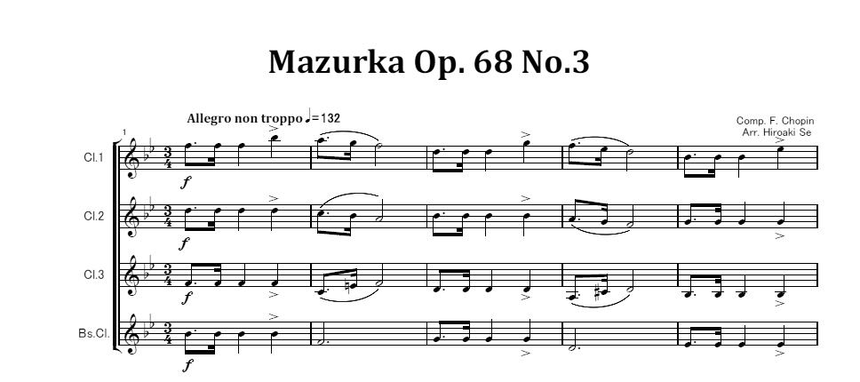 クラリネット四重奏 マズルカ Op.68-3:ショパン