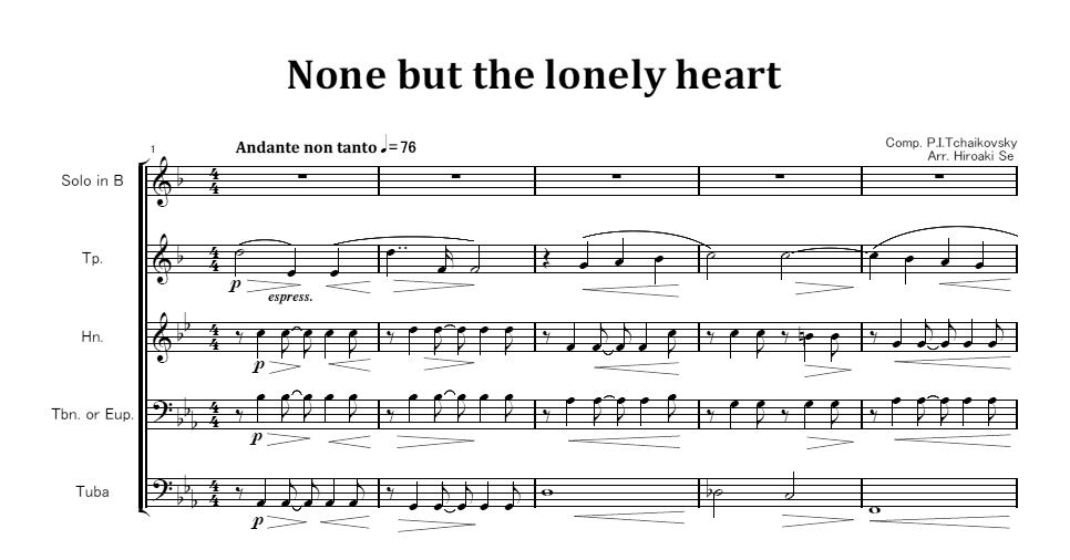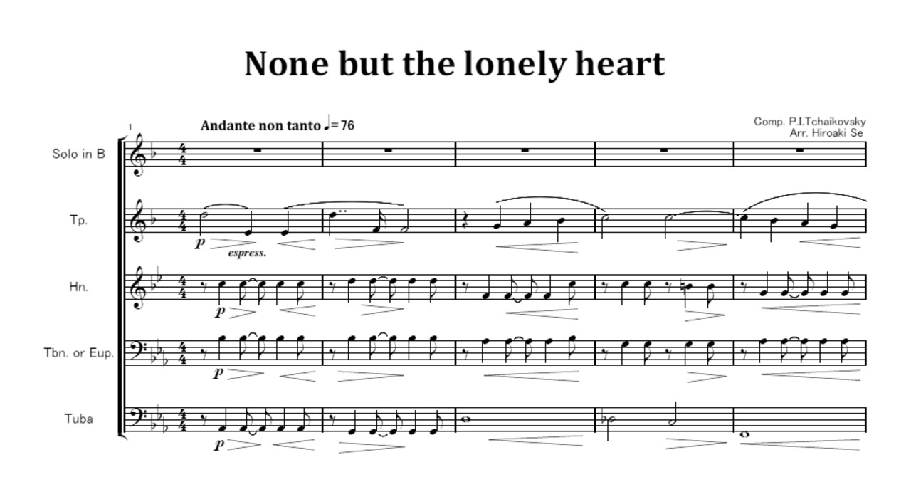 編成はTp.、Hn.、Tbn.またはEup.、TubaおよびSoloパートです。