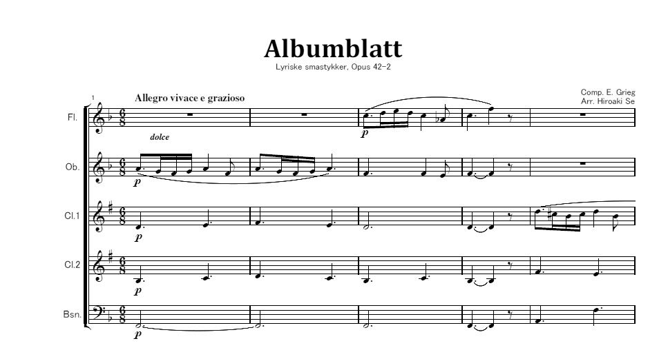 編成はFl.、Ob.、Cl.2本、Bsn.です。