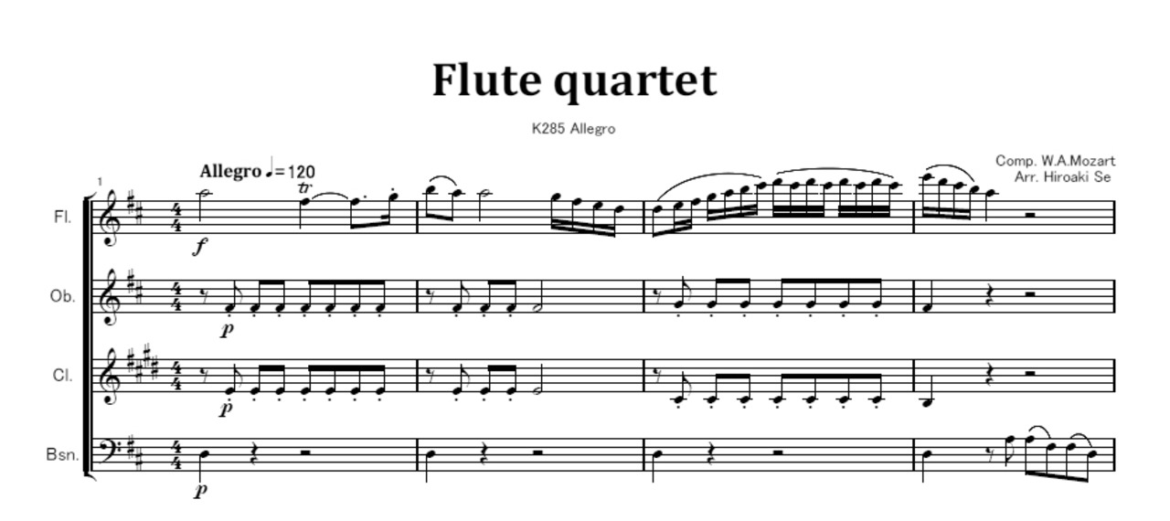 フルート四重奏曲 第1番 ニ長調 K.285木管伴奏