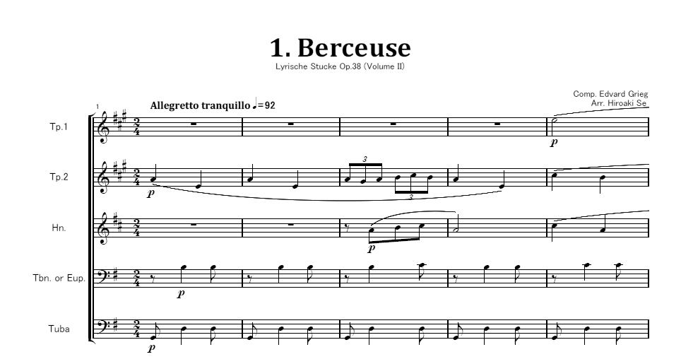 金管五重奏 グリーグ :抒情小品集 第2集 Op.38-1