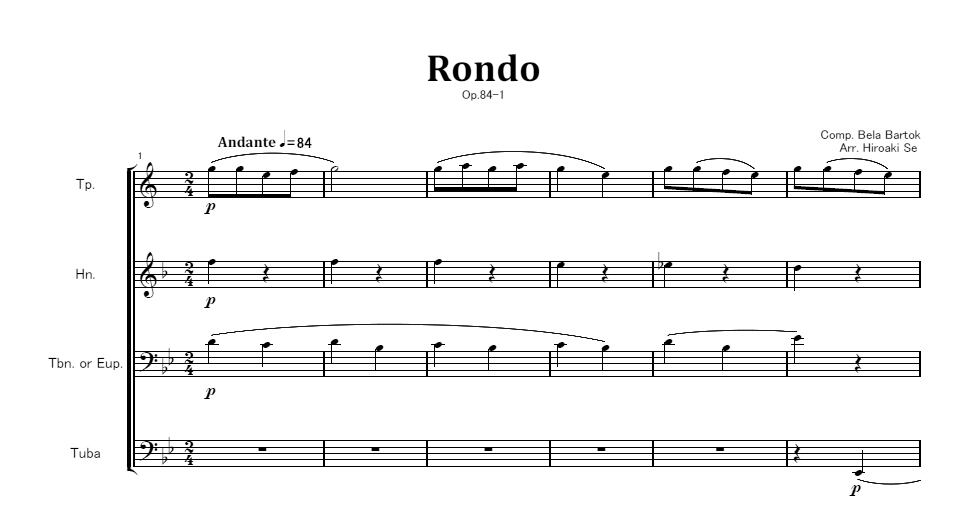 編成はTp.、Hn.、Tbn.またはEup.、Tubaです。