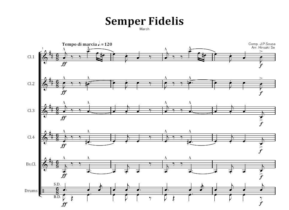 編成はCl.4本、Bs,Cl.およびDrum Setです。