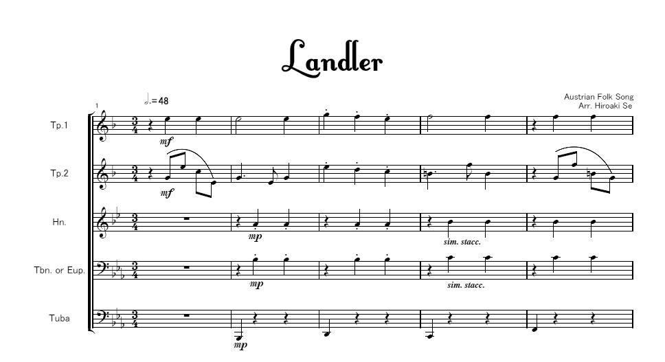 編成はTp.2本、Hn.、Tbn.またはEup.、Tubaです。